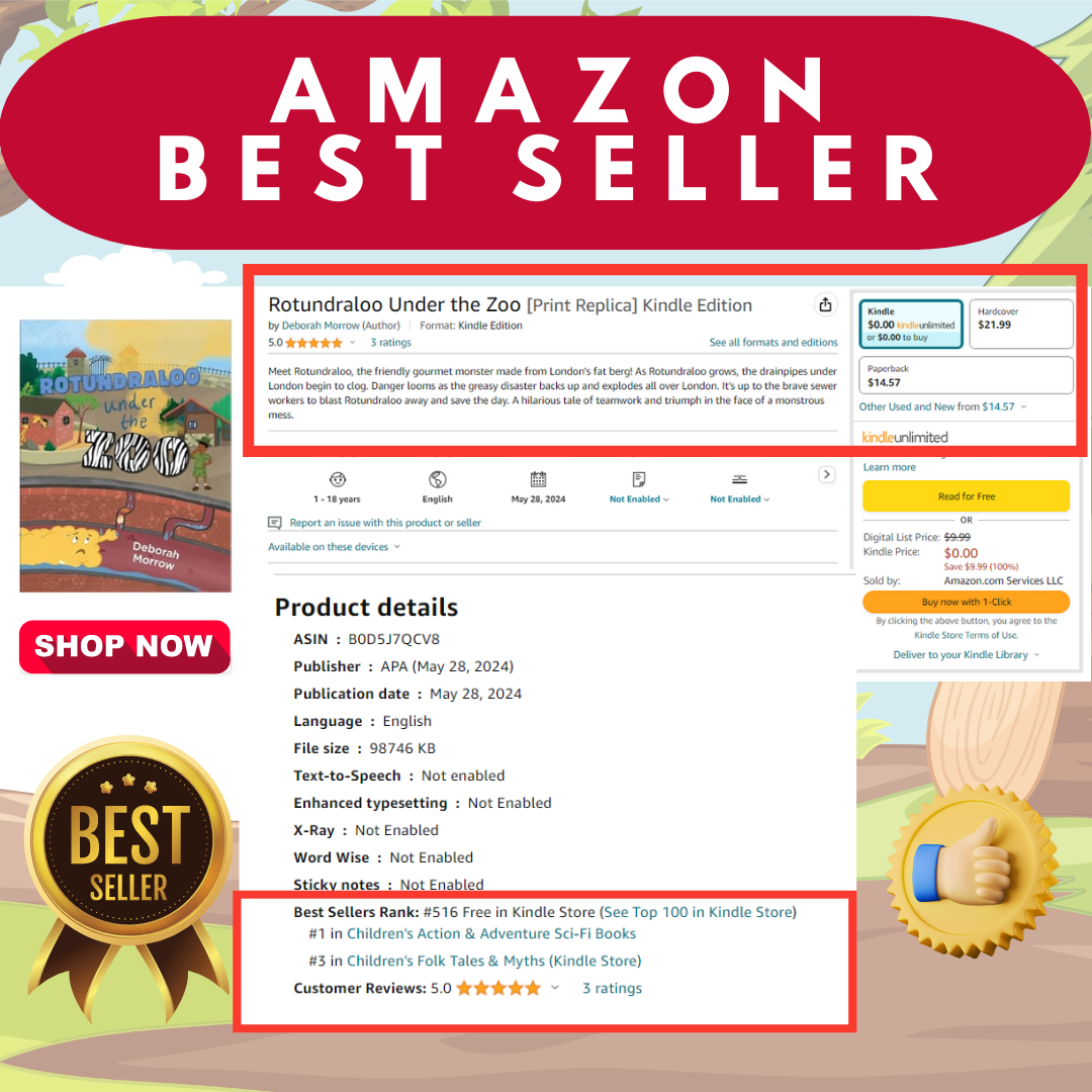 "The humor and heart in 'Rotundraloo under the Zoo' make it a standout children's book. Rotundraloo, who once clogged the streets with his growing size, is a hilarious and lovable character. The story of him being thrown to the sea and searching for new treats is engaging and beautifully illustrated. Deborah Morrow has created a timeless tale that kids will love."